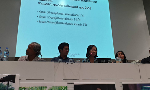 ตัวเลขปี 2560 มีเอกสารสิทธิที่ดินจำนวน 37 ล้านฉบับ รวมพื้นที่ 128 ล้านไร่ คิดเป็นพื้นที่ 40 เปอร์เซ็นต์ของพื้นที่ทั้งหมดของประเทศ แต่มีคนเพียง 25 เปอร์เซ็นต์เท่านั้นที่มีที่ดิน และในจำนวน 25 เปอร์เซ็นต์ของคนที่มีที่ดินนี้มีเพียง 5 เปอร์เซ็นต์ที่เป็นเจ้าของที่ดินมากถึง 80 เปอร์เซ็นต์ของจำนวนที่ดินทั้งหมด