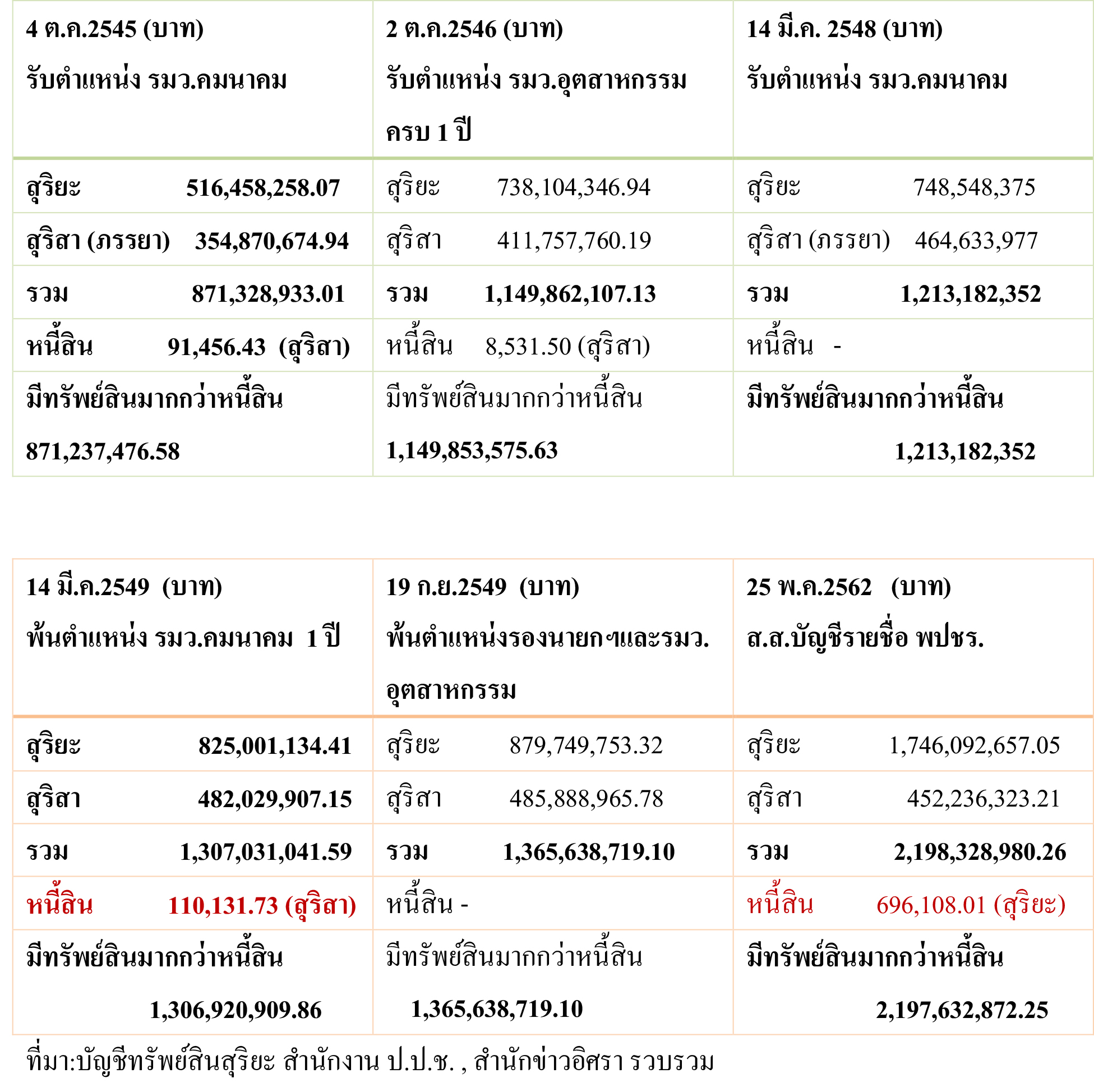 25 พ.ค.2562 รับตำแหน่ง ส.ส.บัญชีรายชื่อ มีทรัพย์สินรวม 2,198,328,980.26 บาท (ดูตารางประกอบ)