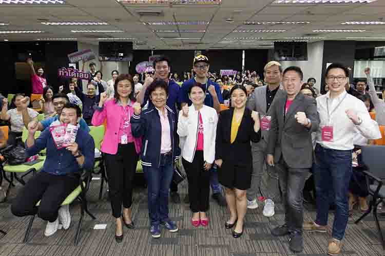นางศิริรัตน์ ยิ้มถนอม รองผู้อำนวยการฝ่ายพัฒนาสังคมและสิ่งแวดล้อม ธนาคารออมสิน (แถวยืนที่ 3 จากซ้าย) นำทีมโร้ดโชว์ประชาสัมพันธ์ โครงการประกวด GSB สุดยอด SMEs Startup ตัวจริง ปีที่ 7 ภายใต้คอนเซ็ป “BIG BOOM WOW ทำได้เลย ทำได้เร็ว ทำได้จริง” เพื่อชิงเงินทุนมูลค่ารวมกว่า 3 ล้านบาท ทีมชนะเลิศจะได้รับเงินทุนมูลค่าถึง 1 ล้านบาท โดยมีนักธุรกิจรุ่นใหม่ ในกรุงเทพฯและจังหวัดใกล้เคียง เข้าร่วมสัมมนาหัวข้อ“Scaling Globally” INSPIRE & IDEATION WORKSHOP ROADSHOW Helping to refine ideas ณ HUBBA สีลมคอมเพล็ก เมื่อเร็วๆนี้ นับเป็นการประชาสัมพันธ์โครงการประกวดฯ เพื่อกระตุ้นเตือนเป็นครั้งสุดท้ายในช่วงโร้ดโชว์ ก่อนปิดรับสมัครวันที่ 30 ก.ย. 2562 ศกนี้