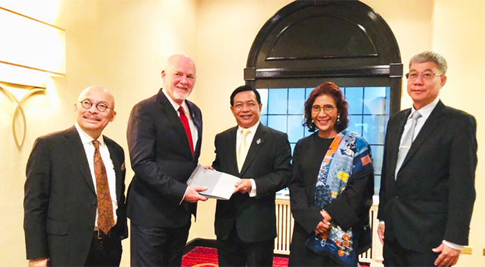 ทางด้านนายปีเตอร์ ทอมสัน ฑูตพิเศษของเลขาธิการสหประชาชาติด้านกิจการทางทะเลและมหาสมุทรแสดงความยินดีที่อาเซียนพร้อมร่วมมือกับกลุ่มประเทศแปซิฟิกในการต่อต้านประมงผิดกฎหมายซึ่งสอดคล้องกับเป้าหมายSDGของสหประชาชาติว่าด้วยประมงยั่งยืน(Sustainable Fishery)พร้อมกับแสดงความชื่นชมรัฐบาลไทยในการต่อต้านการทำประมงผิดกฎหมาย(IUU Fishing)จนเป็นที่ยอมรับจากอียูและการที่ประเทศไทยในฐานะประธานอาเซียนริเริ่มนโยบายประมงอาเซียน (ASEAN General Fisheries Policy)และการจัดตั้งเครือข่าย อาเซียนในการต่อต้านการประมงผิดกฎหมาย(ASEAN Network for combating IUU fishing)
