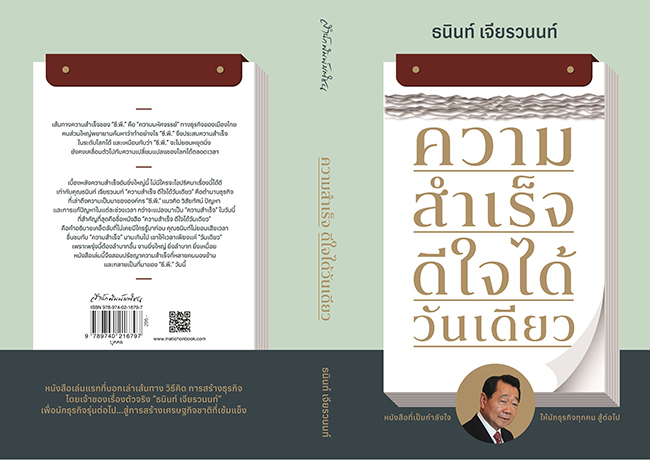 บนเส้นทางชีวิตกว่า 80 ปีของ “ธนินท์ เจียรวนนท์” ประธานอาวุโส เครือเจริญโภคภัณฑ์ (ซีพี) นักธุรกิจระดับตำนานของไทยที่มีชื่อเสียงเป็นที่ยอมรับในระดับโลก มีความฝันและความมุ่งมั่นตั้งใจที่จะถ่ายทอดประสบการณ์บนเส้นทางธุรกิจที่ได้สั่งสมไว้ยาวนานลงบนหนังสือเล่มแรกในชีวิตที่ชื่อว่า “ความสำเร็จ ดีใจได้วันเดียว” ที่จะเปิดเผยถึงเส้นทางชีวิต วิธีคิด และการสร้างธุรกิจ ซึ่งหวังว่าจะเกิดประโยชน์ต่อนักธุรกิจรุ่นใหม่นำไปสู่การสร้างเศรษฐกิจ สังคมที่ยั่งยืน