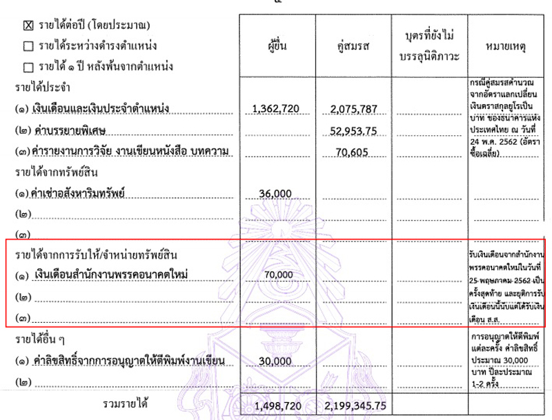 ยังเหลือกรรมการบริหารพรรคอีก 4 ราย ไม่มีข้อมูลว่าได้รับเงินเดือนหรือไม่ เพราะไม่ได้เป็น ส.ส. จึงไม่ได้แจ้งในบัญชีทรัพย์สินและหนี้สินกับ ป.ป.ช.
