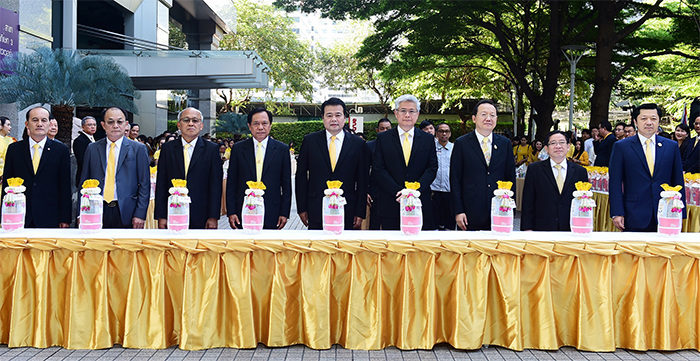 11 ต.ค. 2562 – เครือเจริญโภคภัณฑ์ นำโดย นายศุภชัย เจียรวนนท์ (ที่ 1 จากขวา) ประธานคณะผู้บริหาร พร้อมด้วยคณะผู้บริหารระดับสูง และพนักงานจากกลุ่มธุรกิจต่างๆ พร้อมใจใส่เสื้อเหลือง และร่วมทำบุญตักบาตรพระสงฆ์ จำนวน 99 รูป เพื่อบำเพ็ญกุศลอุทิศถวาย และน้อมรำลึกในพระมหากรุณาธิคุณอย่างหาที่สุดมิได้ของพระบาทสมเด็จพระบรมชนกาธิเบศร มหาภูมิพลอดุลยเดชมหาราช บรมนาถบพิตร เนื่องในโอกาสวันคล้ายวันสวรรคต 13 ตุลาคม 2562 ณ อาคารทรูทาวเวอร์ ถ.รัชดาภิเษก