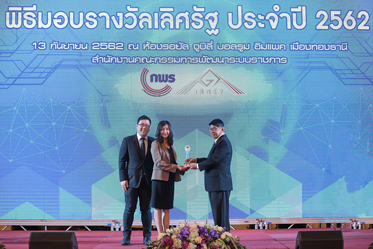 นางไอรดา เหลืองวิไล รองผู้อำนวยการ รักษาการแทนผู้อำนวยการ DGA เข้ารับ“รางวัลเลิศรัฐ”ประจำปี 2562 จัดโดยสำนักงานคณะกรรมการพัฒนาระบบราชการ (สำนักงาน ก.พ.ร.) ซึ่งมอบให้แก่หน่วยงานของรัฐที่มีผลงานการพัฒนาประสิทธิภาพการปฏิบัติราชการและการให้บริการประชาชนได้อย่างโดดเด่น ซึ่งได้รับเกียรติจากนายวิษณุ เครืองาม รองนายกรัฐมนตรี เป็นประธานในพิธีมอบรางวัล ในปีนี้ DGA ได้รับรางวัลในหมวดรางวัลบริการภาครัฐระดับดี ประเภทบูรณาการข้อมูลเพื่อการบริการ จากผลงาน “ตู้บริการอเนกประสงค์ภาครัฐ หรือ Government Smart Kiosk” ที่ใช้นวัตกรรมเพื่อบริการความสะดวกให้ประชาชนเข้าถึงข้อมูลและบริการภาครัฐแบบครบวงจรในรูปแบบดิจิทัล สามารถตรวจสอบข้อมูลส่วนบุคคลและสิทธิประโยชน์ต่าง ๆ ด้วยบัตรประชาชนใบเดียว “ใช้ เช็ก ชัวร์” ได้อย่างมั่นใจ ติดตั้งแล้ว 119 จุดทั่วประเทศ ทั้งในหน่วยงานราชการ ห้างสรรพสินค้าเซ็นทรัล และบิ๊กซี ซูเปอร์เซ็นเตอร์ ณ ห้องรอยัล จูบิลี่ บอลรูม อิมแพค เมืองทองธานี เมื่อเร็วๆ นี้