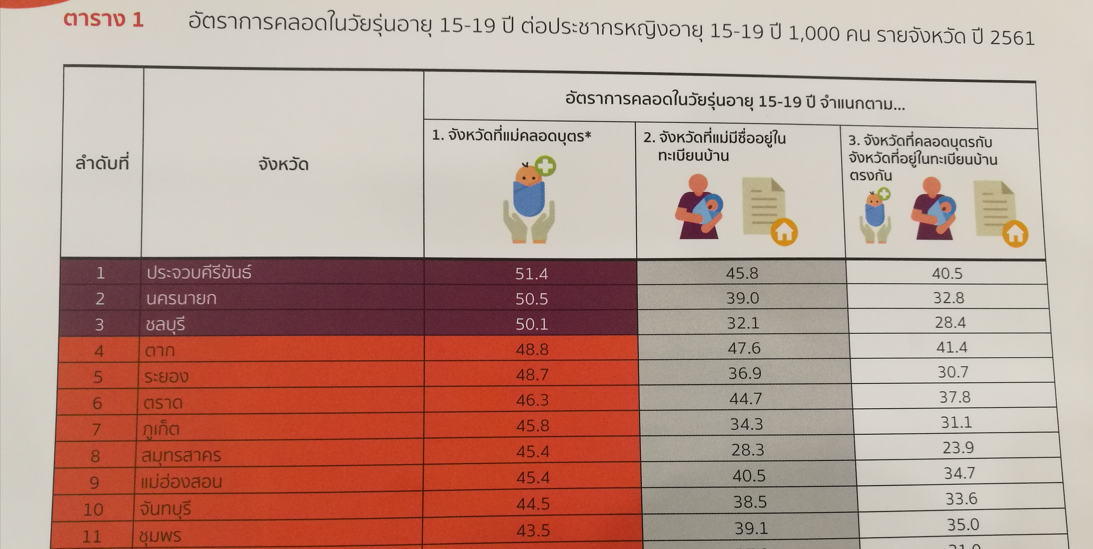แม่วัยรุ่นอยู่ที่ไหน งานวิจัยพบ "ประจวบคีรีขันธ์" เป็นจังหวัดที่มีอัตราการคลอดในวัยรุ่นอายุ 15-19 ปีสูงมาตลอด ปี 2559 สูงเป็นอันดับ 1 ของประเทศ