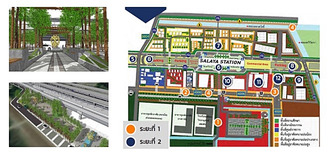 10. สำนักงานทรัพย์สินส่วนพระมหากษัตริย์ / เทศบาลตำบลศาลายา ปรับปรุงทางเข้าหลักของสถานีรถไฟ ให้เป็นเส้นทางการเดินและทางจักรยาน และเป็นพื้นที่เชิงพาณิชย์