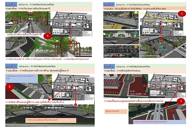 6. การรถไฟแห่งประเทศไทย ปรับปรุงพื้นที่ด้านหน้าสถานี ให้เป็นพื้นที่สีเขียว มีทางเดินร่มเงา มีลานกิจกรรม รวมถึงปรับปรุงแนวพื้นที่ด้านข้างสถานีเป็นที่จอดรถ และพื้นที่พาณิชยกรรม