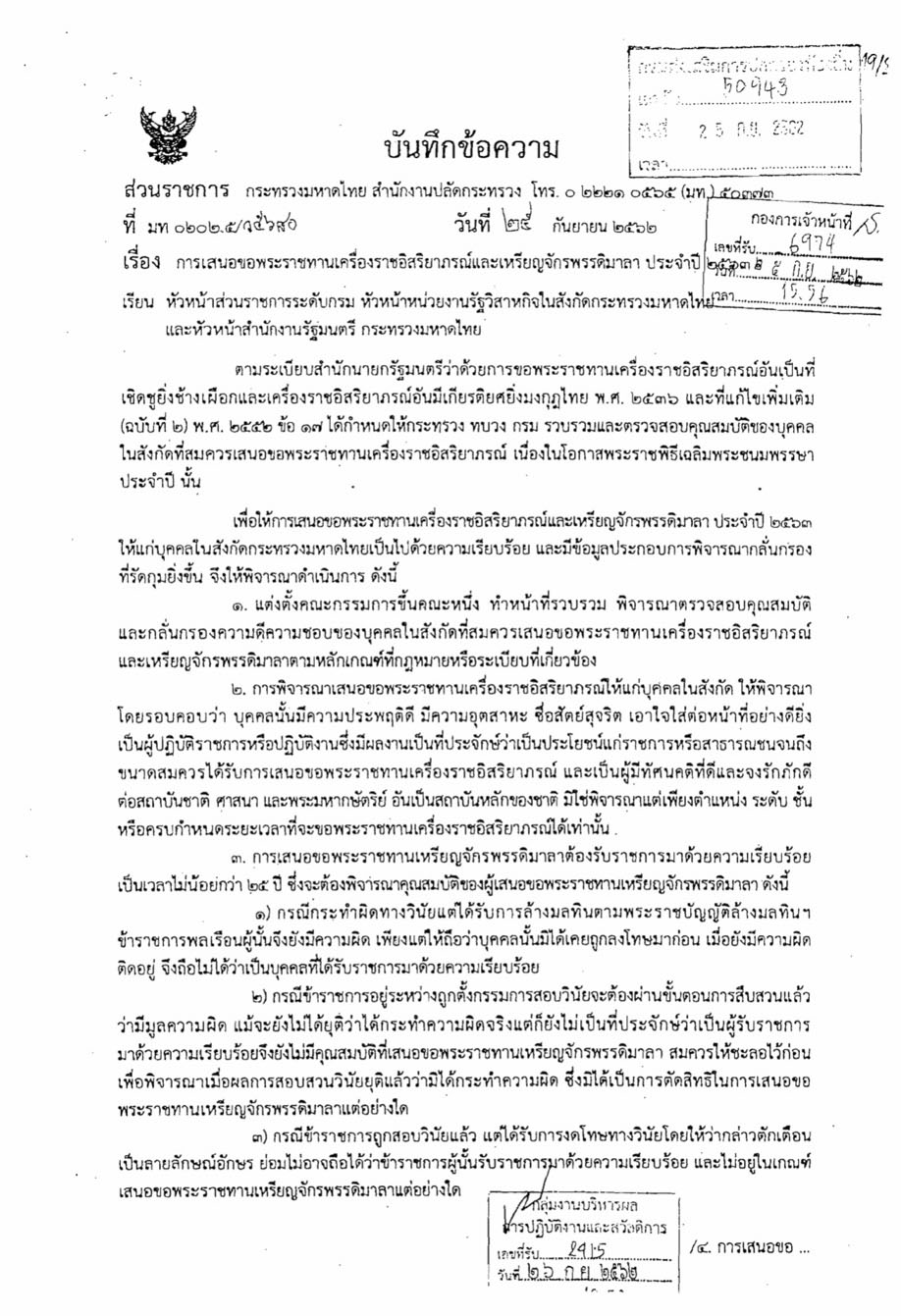 ล้างมลทินความผิดยังติดตัว! ข้อห้าม 'มท.' ขอพระราชทานเครื่องราชฯ-เหรียญจักรพรรดิมาลา ปี 63