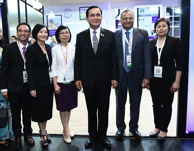 ในโอกาสนี้ พล.อ.ประยุทธ์ จันทร์โอชา นายกรัฐมนตรี ได้ให้เกียรติเยี่ยมชมบูธของธนาคารไทยพาณิชย์ โดยมีนายกมัลกานต์ อากาวัล ที่ปรึกษาประธานเจ้าหน้าที่บริหาร ด้านธุรกิจต่างประเทศ (ที่สองจากขวา) และผู้บริหารระดับสูงธนาคารไทยพาณิชย์ ให้การต้อนรับ