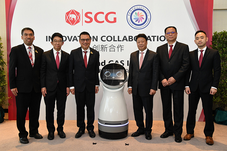 เอสซีจีจึงมีความยินดีเป็นอย่างยิ่งที่สถาบันบัณฑิตวิทยาศาสตร์จีน (Chinese Academy of Sciences - CAS) ซึ่งเป็นสถาบันวิทยาศาสตร์ระดับสูงที่มีบทบาทสำคัญต่อการพัฒนาวิทยาศาสตร์ และเป็นแหล่งกำเนิดเทคโนโลยีและนวัตกรรมที่สำคัญของจีน ได้เริ่มต้นความร่วมมือกับเอสซีจี ในการวิจัยและพัฒนาด้านวิทยาศาสตร์ เทคโนโลยี และนวัตกรรม ผ่านสำนักงานนวัตกรรมและความร่วมมือ (กรุงเทพ) สถาบันบัณฑิตวิทยาศาสตร์จีน (CAS Innovation Cooperation Center (Bangkok) - CAS ICCB) ตั้งแต่ปี 2561 เพื่อร่วมกันพัฒนาเทคโนโลยีใหม่ ๆ ที่ตอบโจทย์เทรนด์อนาคต ผ่านการดูงานในสถาบันวิจัยและบริษัทด้านเทคโนโลยี การสรรหาเทคโนโลยีและนวัตกรรมที่ตอบโจทย์ความต้องการในด้านต่าง ๆ และการนำเทคโนโลยีมาทดลองใช้เพื่อต่อยอดในอนาคต (Proof Of Concept - POC) เช่น Sensor / IoT อาคารและโรงงานอัจฉริยะ และการจัดการมลพิษ เป็นต้น