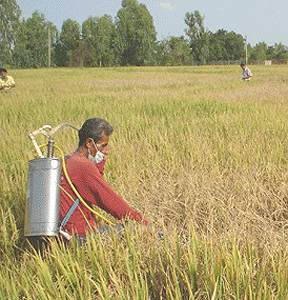 “การใช้สารกำจัดศัตรูพืช เกษตรกรจะต้องใส่ถุงมือ สวมหน้ากากปิดปากจมูก สวมเสื้อผ้าให้มิดชิด เพื่อป้องกันการสัมผัสสารเคมีโดยตรงที่ผิวหนังและการสูดเข้าทางจมูก” นางพรรณ สิริกล่าว