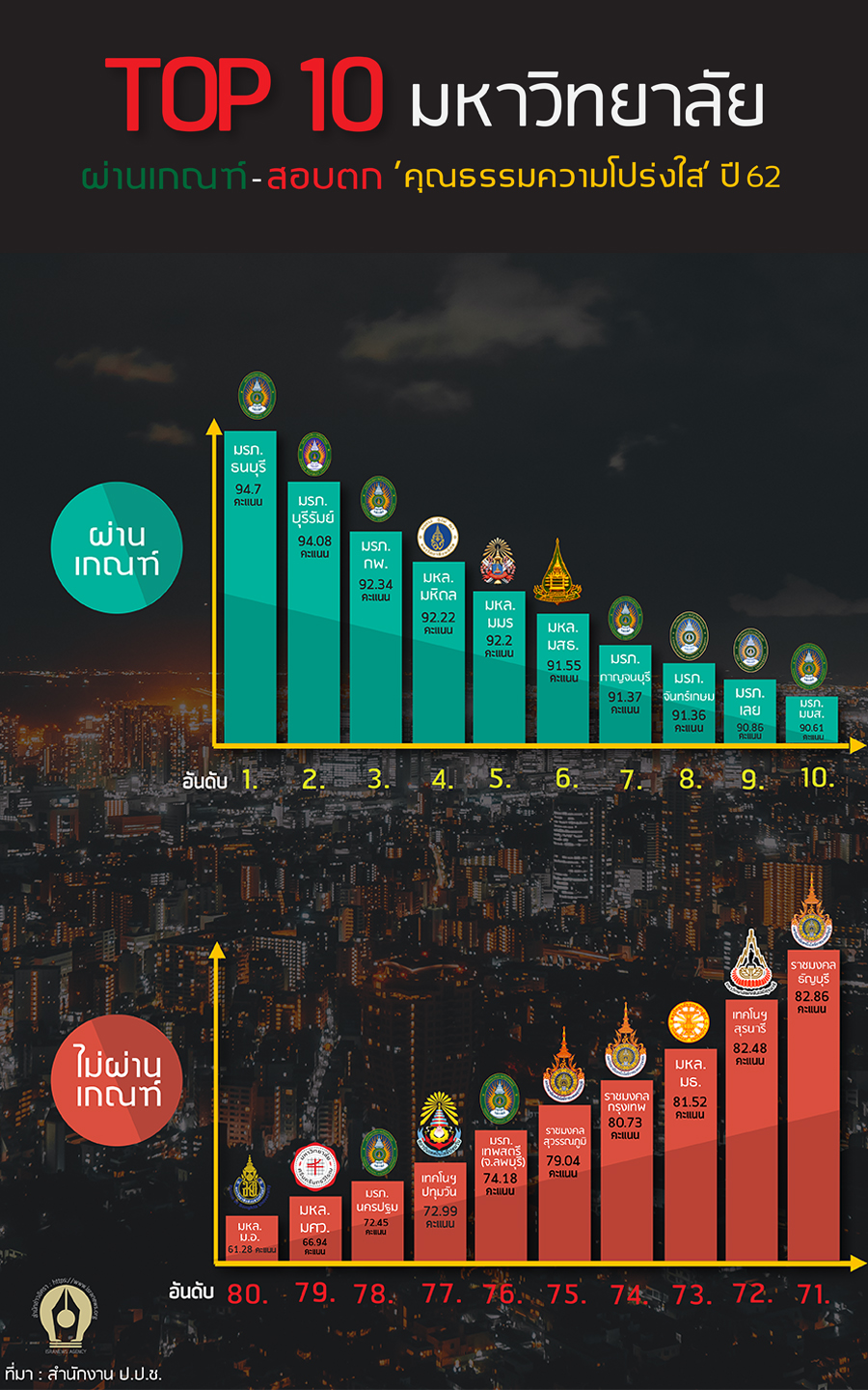 INFO:TOP 10 มหาวิทยาลัย ผ่านเกณฑ์-สอบตก 'คุณธรรมความโปร่งใส’ ปี 62