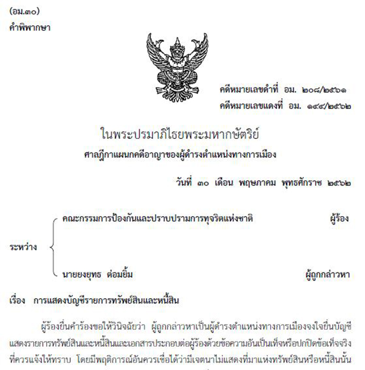 ศาลฎีกาฟันนายก อบต.เทพมงคล จ.พระนครศรีฯ ยื่นบัญชีเท็จ -2 รอง ยโสฯ ปัตตานี ไม่ยื่น