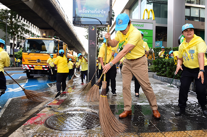 พร้อมกันนี้ บริเวณหน้าอาคารทรู ทาวเวอร์ ถ.รัชดาภิเษก บมจ.ทรู คอร์ปอเรชั่น นำโดย นายอติรุฒม์ โตทวีแสนสุข รองประธานคณะกรรมการบริหาร พร้อมด้วยผู้บริหารและพนักงานกว่า 100 คน ร่วมทำความสะอาด เก็บขยะบริเวณทางเท้าและทำความสะอาดที่นั่งพักรอรถประจำทาง ตั้งแต่บริเวณแยกศูนย์วัฒนธรรม จนถึง แยกโรบินสัน