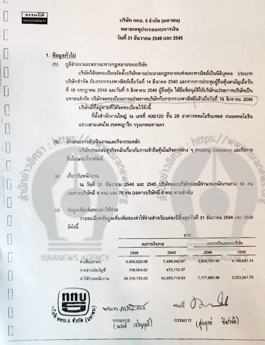 โดยข้อมูลงบการเงิน ณ วันที่ 31 ธ.ค.2546 ซึ่งเป็นงบการเงินปีแรกที่จัดส่งให้กรมพัฒนาธุรกิจการค้ารับทราบ หลังจากบริษัทแห่งนี้ ยังใช้ชื่อเดิมว่า บริษัท ททบ.5 จำกัด แปรสภาพบริษัทเป็นมหาชนจำกัด เมื่อวันที่ 19 ส.ค.2546
