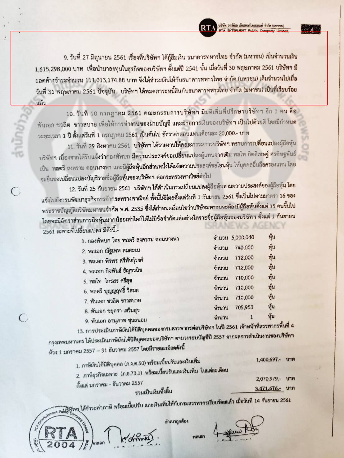 ชัดๆ หนี้1.2พันล้าน ‘บ.ทหาร RTA’ กองทัพบก ให้กู้ตั้งแต่ปี45-ไร้ดอกเบี้ย