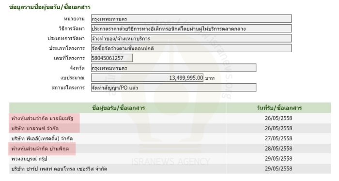 ก่อนที่จะมีผู้ยื่นซองเอกสาร เมื่อวันที่ 8 มิ.ย. 2558 จำนวน 3 ราย คือ ห้างหุ้นส่วนจำกัด มวลนิยมรัฐ บริษัท บาลานซ์ จำกัด และ ห้างหุ้นส่วนจำกัด บ้านพิกุล