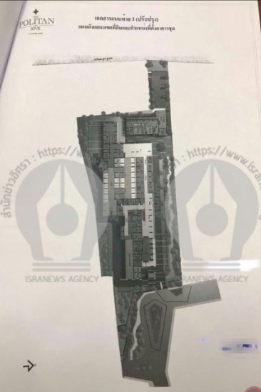 กล่าวสำหรับ ผังของโครงการที่ปรับปรุงใหม่ เนื่องจากไม่สามารถออกกรรมสิทธิในส่วนที่เป็นที่ดินริมตลิ่งที่น้ำท่วมถึงได้ ทำให้ที่ดินที่ตั้งโครงการมีส่วนที่ติดแม่น้ำเพียงเล็กเท่านั้น (ดูเอกสาร)