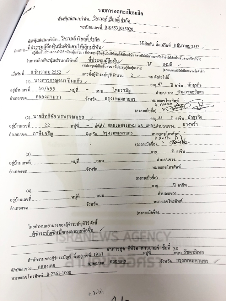 ล่าสุด สำนักข่าวอิศรา ลงพื้นที่ตรวจสอบข้อมูล น.ส.กาญจนา ปิ่นแก้ว และ นายสิทธิชัย พรพรรณนุกูล ผู้ถือหุ้นบริษัทฯ 2 ราย ในช่วงเวลาที่ศาลพิพากษาให้ล้มละลายเมื่อวันที่ 11 ก.ค.2554 ตามที่อยู่ที่แจ้งไว้ในเอกสารจดทะเบียนบริษัทฯ โดยที่อยู่ของ น.ส.กาญจนา คือ บ้านเลขที่ 40/455 ถนนไทยรามัญ แขวงสามวาตะวันตก แขตคลองสามวา กรุงเทพมหานคร ส่วนที่อยู่ของนายสิทธิชัย คือ บ้านเลขที่ 22 ซอยเพชรเกษม 46 แขวงบางหว้า เขตภาษีเจริญ กรุงเทพมหานคร (ดูเอกสารประกอบ)