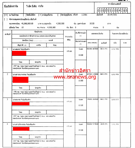 หลักฐานคดีผู้สมัคร ส.ส. ปชป. ถือหุ้นสื่อ วัตถุประสงค์ชัด 7 ข้อ - เพิ่งโอน 8 ก.พ.62
