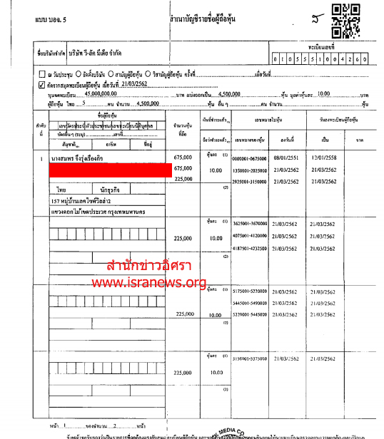 ‘ธนาธร’โอนหุ้น 2 บ.‘กิจการสื่อ’250 ล. ให้เครือไทยซัมมิท ระบุวันลงทะเบียน 8 ม.ค.62