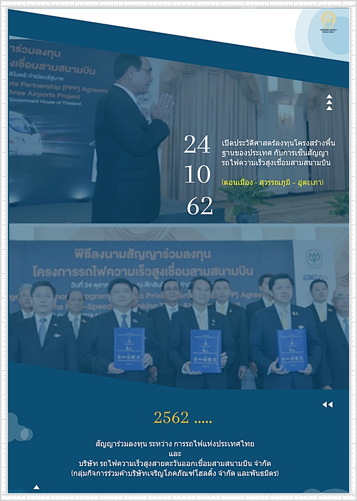 1.การเซ็นสัญญาโครงการรถไฟความเร็วสูงเชื่อม 3 สนามบิน (ดอนเมือง - สุวรรณภูมิ - อู่ตะเภา) ระหว่าง การรถไฟแห่งประเทศไทย และบริษัท รถไฟความเร็วสูงสายตะวันออกเชื่อมสามสนามบิน จำกัด (กลุ่มกิจการร่วมค้าบริษัทเจริญโภคภัณฑ์โฮลดิ้ง จำกัด และพันธมิตร) ซึ่งถือเป็นการเปิดประวัติศาสตร์ลงทุนโครงสร้างพื้นฐานของประเทศ