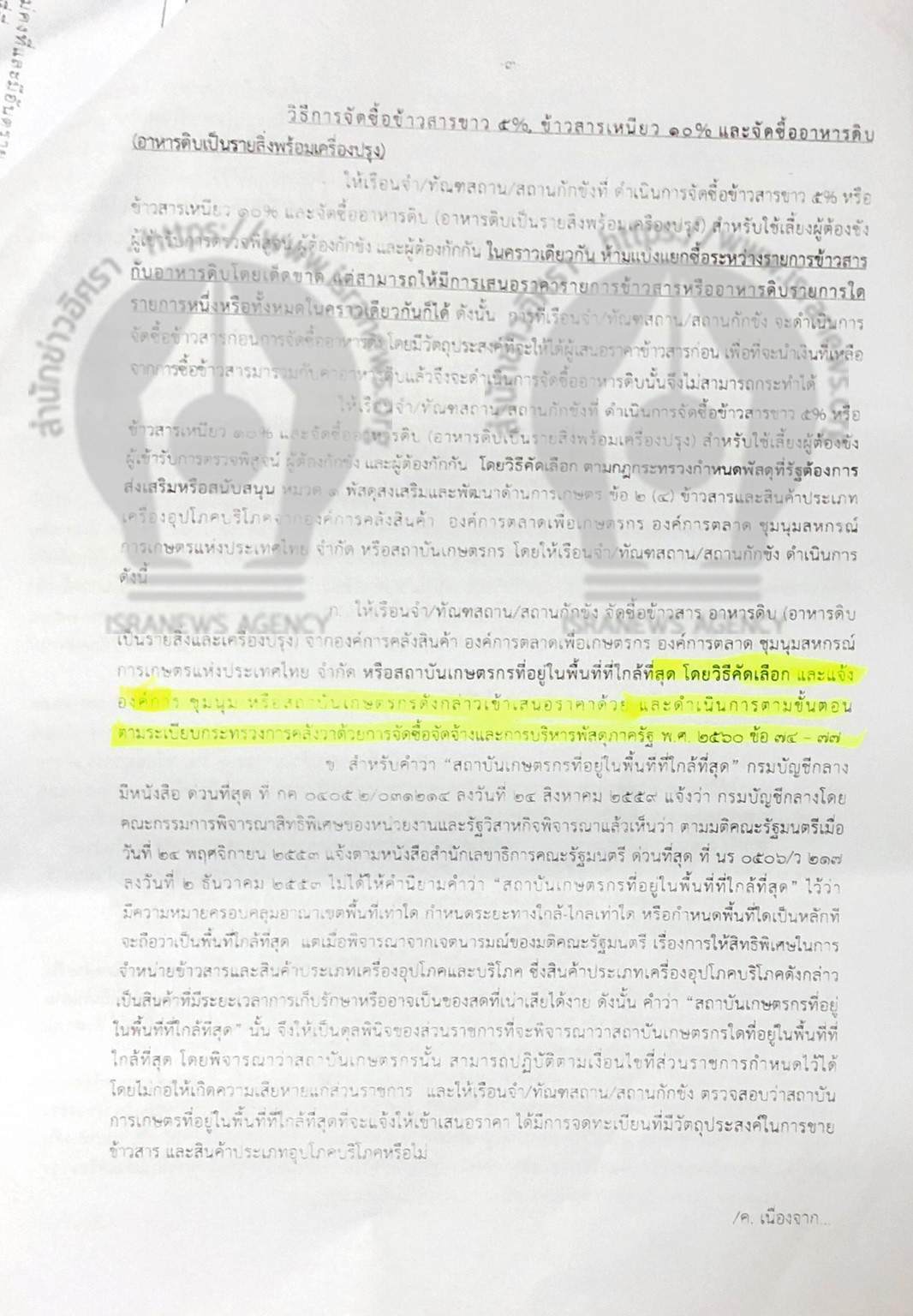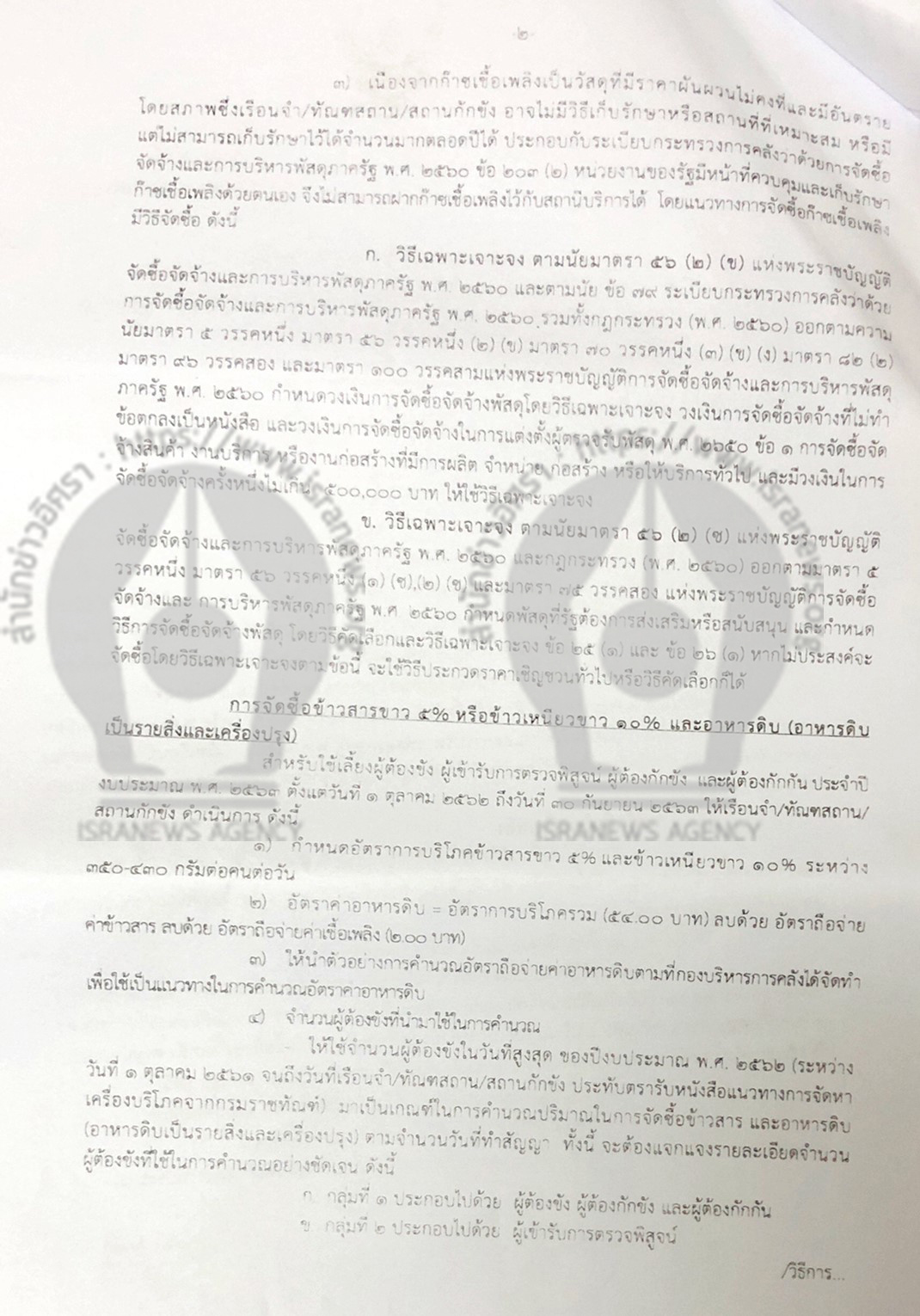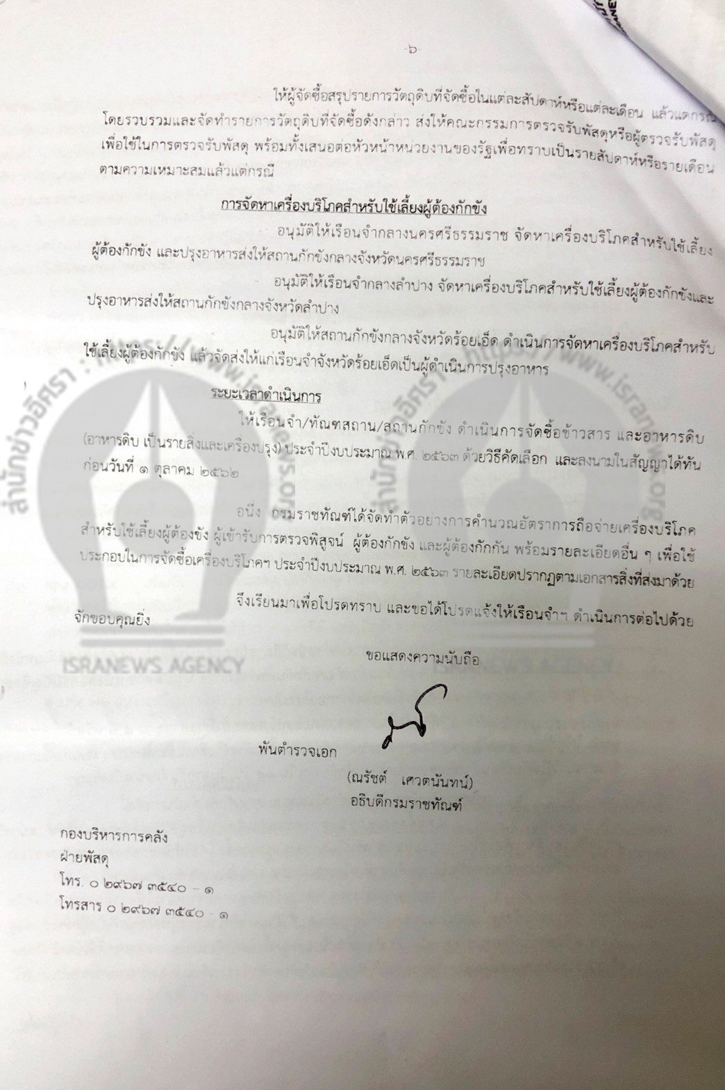 สำนักข่าวอิศรา www.isranews.org ได้รับการร้องเรียนว่า เมื่อวันที่ 13 ก.ย.2562 กรมราชทัณฑ์ โดย พ.ต.อ.ณรัชต์ เศวตนันทน์ อธิบดี ได้ทำหนังสือถึงผู้ว่าราชการจังหวัด กำหนดแนวทางการจัดซื้อเครื่องบริโภคสำหรับใช้เลี้ยงผู้ต้องขัง ผู้เข้ารับการตรวจพิสูจน์ ผู้ต้องกักขัง และผู้ต้องขัง ประจำปีงบประมาณ 2563 โดยกำหนดให้เรือนจำ/ทันฑสถาน/สถานกักขัง จัดซื้อข้าวสาร อาหารดิบ (อาหารดิบเป็นรายสิ่งและเครื่องปรุง) จากองค์การคลังสินค้า องค์การตลาดเพื่อเกษตรกร องค์การตลาด ชุมนุมสหกรณ์การเกษตรแห่งประเทศไทย จำกัด หรือ สถาบันเกษตรกรที่อยู่ในพื้นที่ใกล้ที่สุด โดยวิธีการคัดเลือก และแจ้งองค์การ ชุมนุม หรือ สถาบันเกษตรกรดังกล่าวเข้าเสนอราคาด้วย และดำเนินการตามขั้นตอนตามระเบียบกระทรวงการคลังว่าด้วยการจัดซื้อจัดจ้างและบริหารพัสดุภาครัฐพ.ศ.2560 ข้อ 74-77