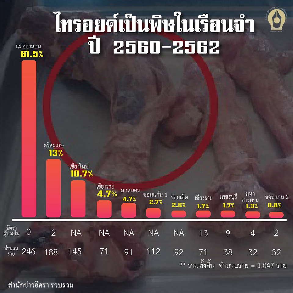 เปิดสถิติ 3 ปี ผู้ต้องขังไทรอยด์เป็นพิษ แม่ฮ่องสอนนำโด่ง -กินเนื้อหมู ไก่ ผสม’คอสัตว์’