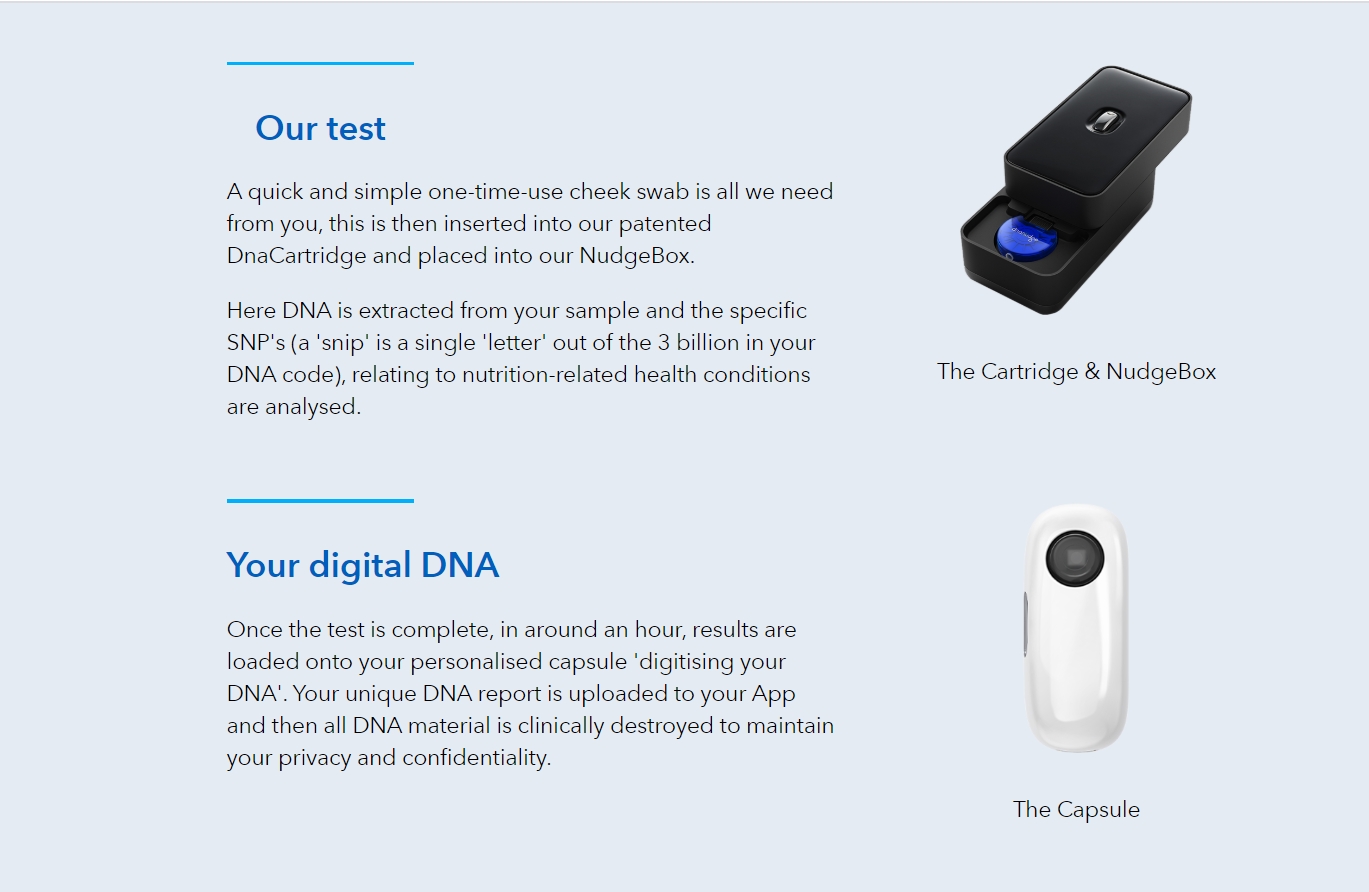ถือเป็นการปรับพฤติกรรมในการทานอาหารที่จะมีผลดีต่อสุขภาพของเราในระยะยาว คือ ทานอาหารให้เป็นยา เพื่อป้องกันไม่ให้เราต้องทานยาเป็นอาหารในอนาคต ดิฉันมองว่า ตรงนี้ทำให้เราสามารถเลือกบริโภคอาหารเพื่อสุขภาพได้อย่างน่าสนใจทีเดียวค่ะ หากใครสนใจที่จะทดสอบ DNA ก็สามารถแวะมาที่ ร้าน DNA nudge ย่าน Covent Garden เมืองลอนดอน ประเทศอังกฤษ และเข้าไปดูรายละเอียดเพิ่มตามนี้ได้เลยนะคะ" (https://www.dnanudge.com/en/About-Us)