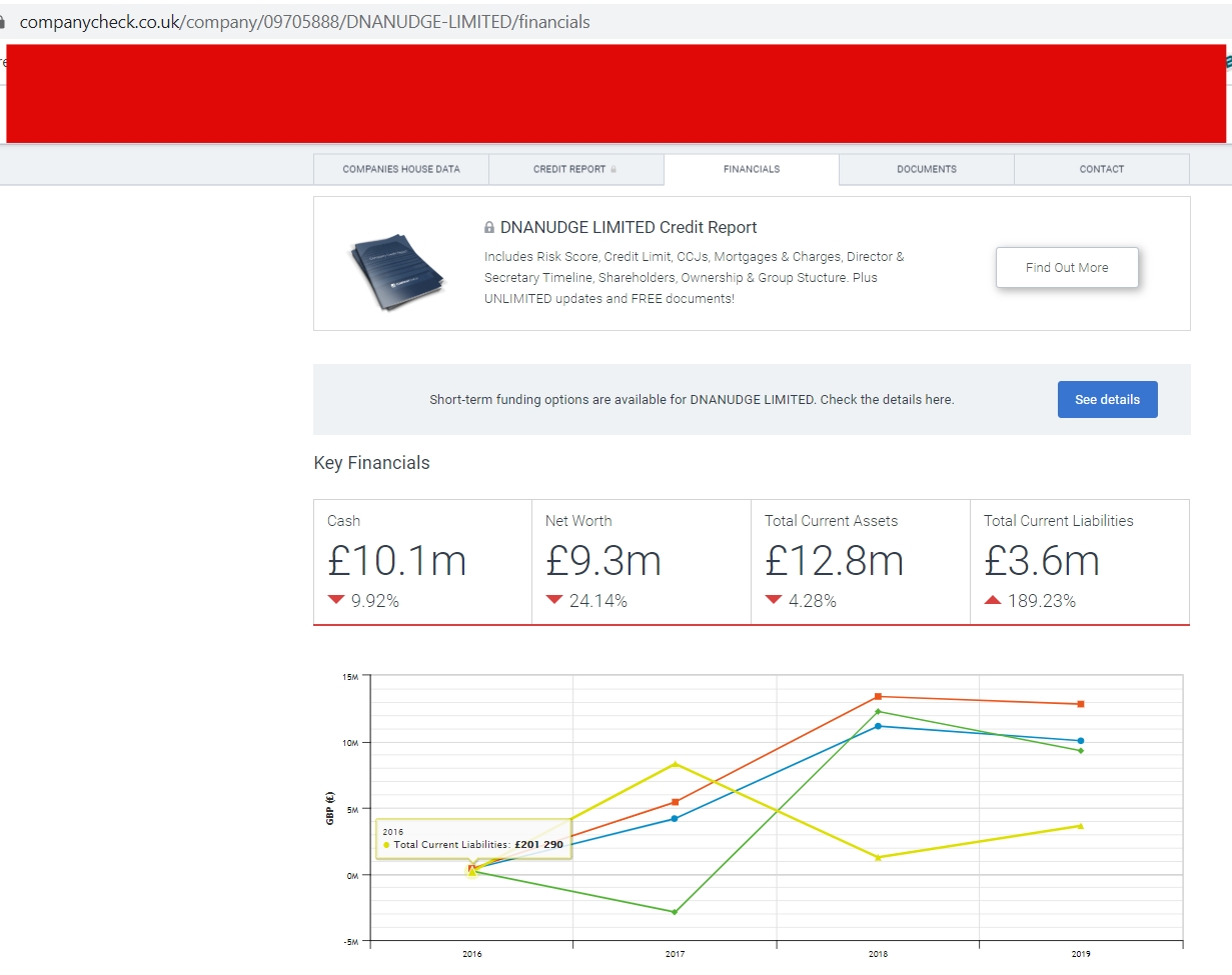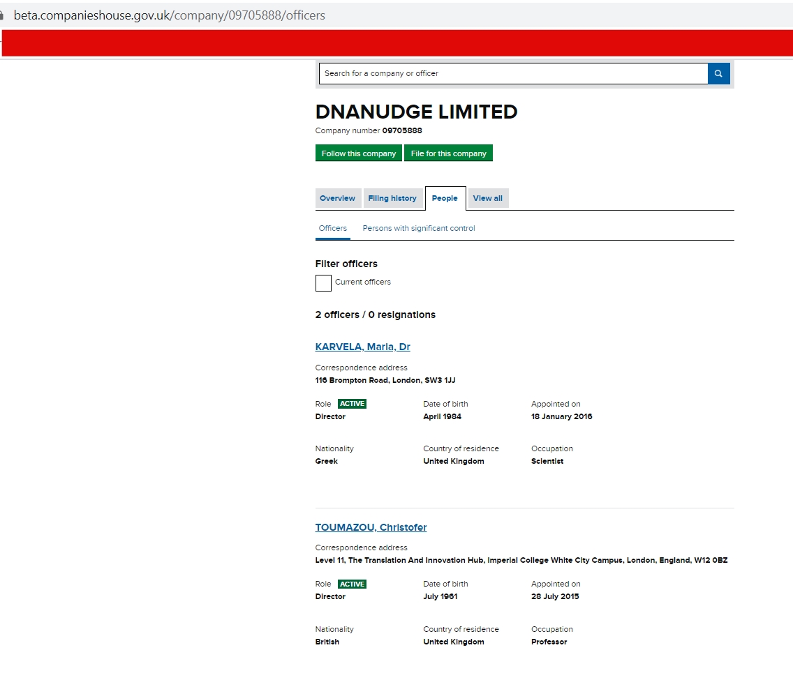 สำหรับข้อมูลของบริษัท DNA Nudge นั้น เว็บไซต์ข้อมูลธุรกิจของประเทศอังกฤษ (https://beta.companieshouse.gov.uk/) ระบุชื่อเป็นทางการว่า DNANUDGE LIMITED ก่อตั้งขึ้นเมื่อวันที่ 28 ก.ค. 2558 แจ้งอยู่ที่ Level 11, The Translation And Innovation Hub, Imperial College White City Campus, London, England, W12 0BZ