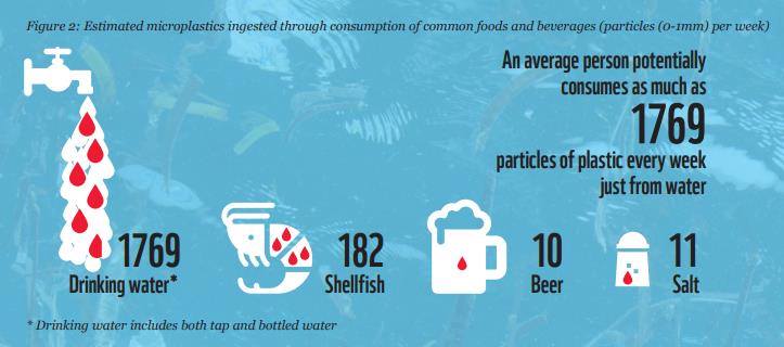 งานวิจัย ระบุว่า ค่าเฉลี่ยของพลาสติกขนาดจิ๋วที่มนุษย์บริโภคเข้าไป อาจมีจำนวนมากถึง 2 พันชิ้นต่อสัปดาห์ หรือ 5 กรัมต่อสัปดาห์ เทียบเท่าบัตรเครดิต 1 ใบ ซึ่งการประเมินปริมาณพลาสติกที่มนุษย์อาจบริโภคเข้าไป ก็มีปริมาณที่แตกต่างกันไป ขึ้นอยู่กับชนิดของอาหารและพฤติกรรมการเลือกรับประทานด้วย