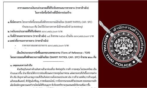 คุ้ยจัดซื้อรถไฟฟ้าอัจฉริยะ ตร. 898 ล. เจอแค่TOR-ราคากลาง ไม่โชว์สัญญาผู้ชนะ-คู่เทียบ