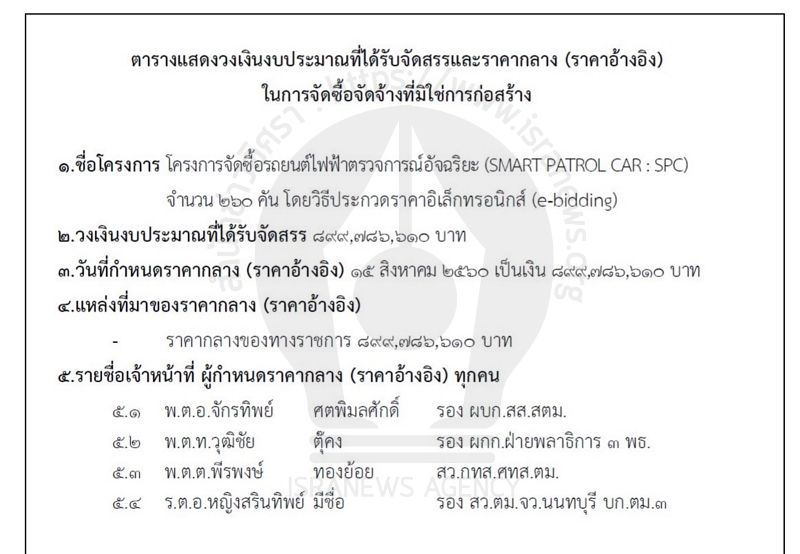 ทั้งนี้ สำนักข่าวอิศราพยายามติดต่อ สำนักงานส่งกำลังบำรุง (สกบ.) สำนักงานตำรวจแห่งชาติ (สตช.) ทางโทรศัพท์ แต่ไม่มีผู้รับสาย