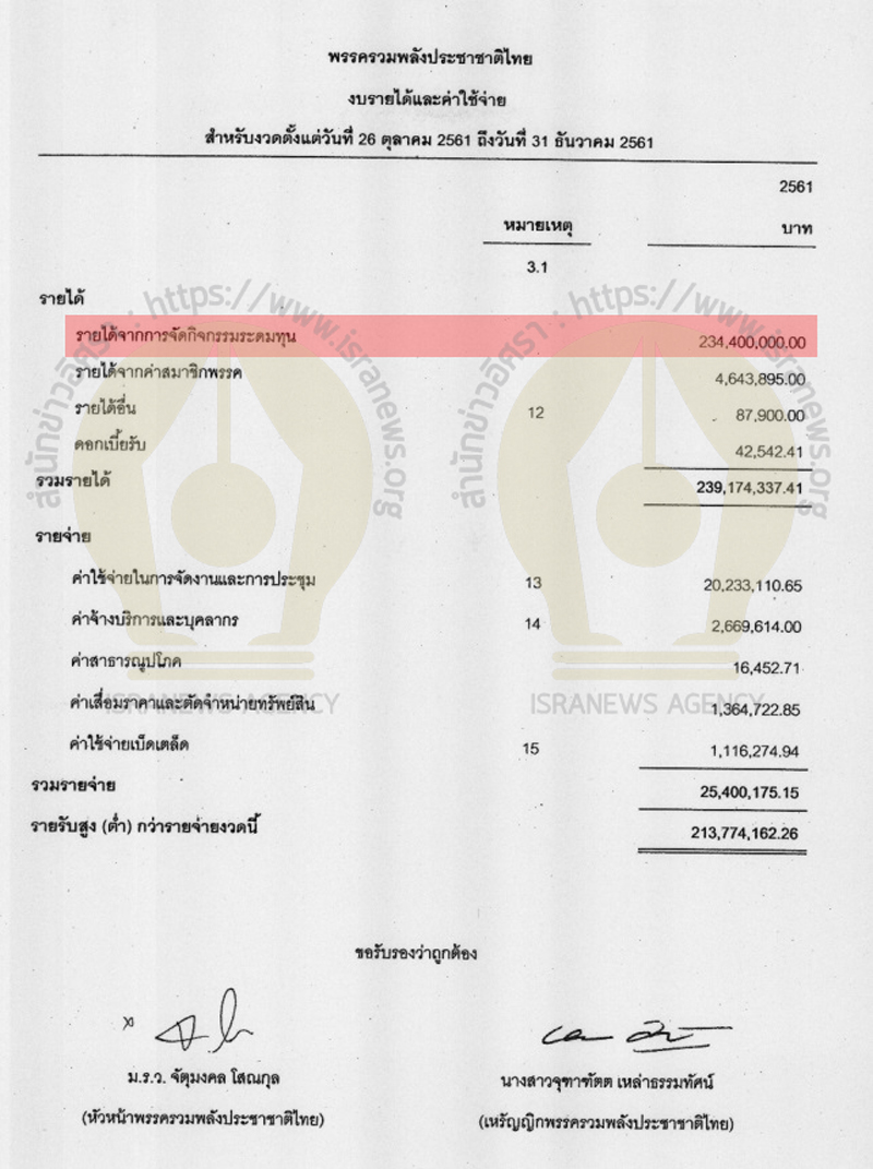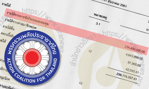 รปช.โชว์รายได้งานโต๊ะจีน 234 ล.แต่ค้างรับอยู่ 166 ล.-เงินกู้ยืมจาก กก.พรรค 5 ล.