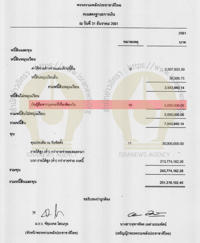 พรรค รปช. แจ้งงบการเงินโชว์มีรายได้จากการระดมทุน 234.4 ล้าน แต่ค้างรับอยู่ 166.3 ล้าน ค่าใช้จ่ายในการจัดงาน 16.7 ล้าน แจ้งมีสินทรัพย์รวม 251 ล้าน หนี้สินรวม 7.5 ล้าน ระบุหมายเหตุงบการเงินมีเงินกู้ยืมจากกรรมการบริหารพรรค 5 ล้าน ไม่คิดดอกเบี้ย-ไม่ได้ทำสัญญา