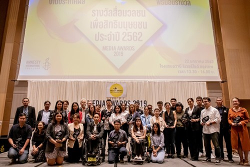 แอมเนสตี้ อินเตอร์เนชั่นแนล ประเทศไทย ได้จัดงานประกาศผลและพิธีมอบรางวัล “รางวัลสื่อมวลชนเพื่อสิทธิมนุษยชน” ประจำปี 2562 ณ ห้องประชุมลูนาร์ ชั้น 10 โรงแรมอวานี ริเวอร์ไซด์ กรุงเทพ (AVANI Riverside Bangkok) โดยมอบรางวัลผลงานสื่อมวลชนดีเด่นด้านสิทธิมนุษยชนให้กับสื่อสิ่งพิมพ์ สื่อออนไลน์ และสื่อโทรทัศน์