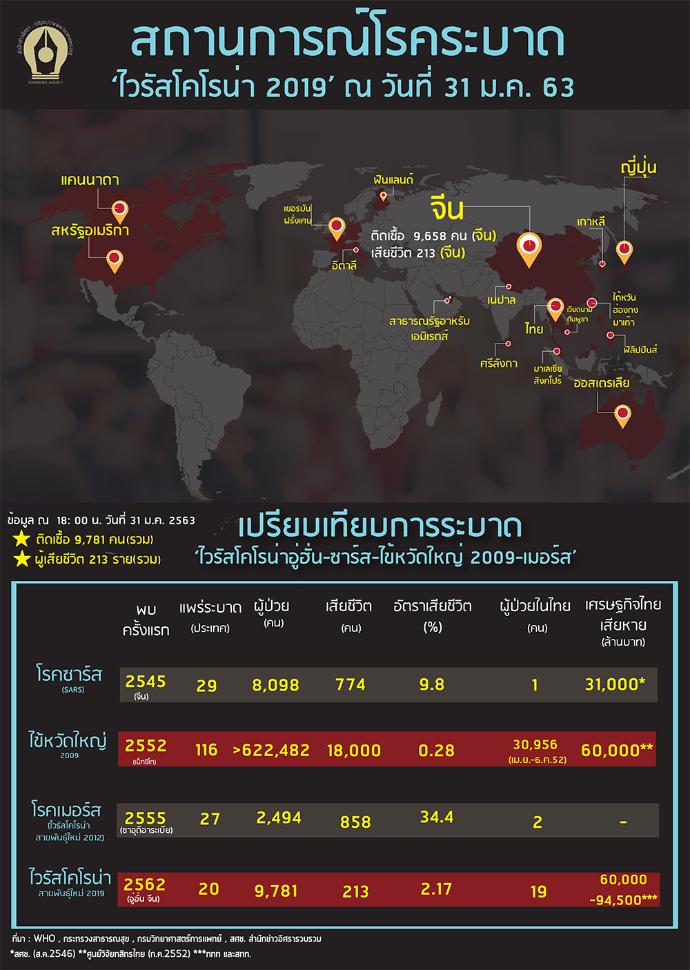 อ่านประกอบ : INFO : เทียบ 4 วิกฤตโรคระบาด ‘ไวรัสโคโรน่าอู่ฮั่น’ กระทบไทยหนักสุด