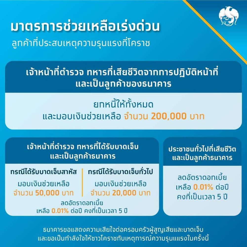 '3 แบงก์รัฐ' ออกมาตรการช่วยเหลือ ‘ผู้เสียชีวิต-ผู้บาดเจ็บ’ เหตุรุนแรงโคราช