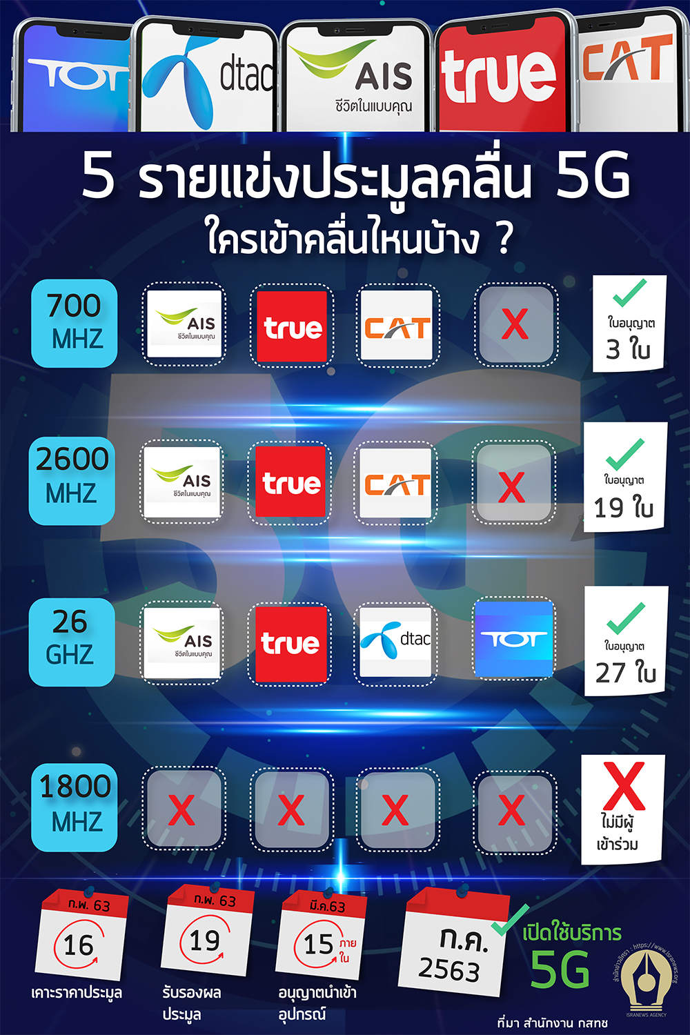 INFO: 5 รายแข่งประมูลคลื่น 5G ใครเข้าคลื่นไหนบ้าง