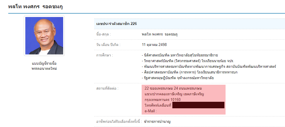 ขณะที่ข้อมูลจากฐานข้อมูล ส.ส. เว็บไซต์สภาผู้แทนราษฎร ระบุตรงกันกับที่ พล.ท.พงศกร แจ้งในบัญชีทรัพย์สิน