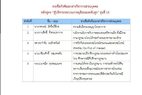 ทั้งนี้ หนึ่งในผู้เข้ารับการอบรมหลักสูตร บยส. รุ่นที่ 15 มีชื่อของ น.ส. วัชรี พรรณเชษฐ์ ผู้ถือหุ้นใหญ่ บริษัท เอ็มเอสซี สิทธิผล จำกัด ที่เป็นคู่สัญญาโครงการไบโอเมตริก วงเงิน 2.1 พันล้านบาท รวมอยู่ด้วย (ดูเอกสารประกอบ)