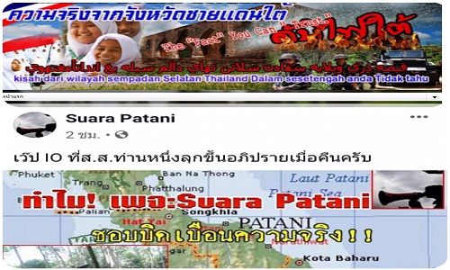 ภาพประกอบของเรื่องนี้ (ภาพครึ่งล่าง) คือหน้าเพจ "ซูรอ ปาตานี" (Suara Patani) ล่าสุดเมื่อช่วงเช้าของวันพุธที่ 26 ก.พ.63