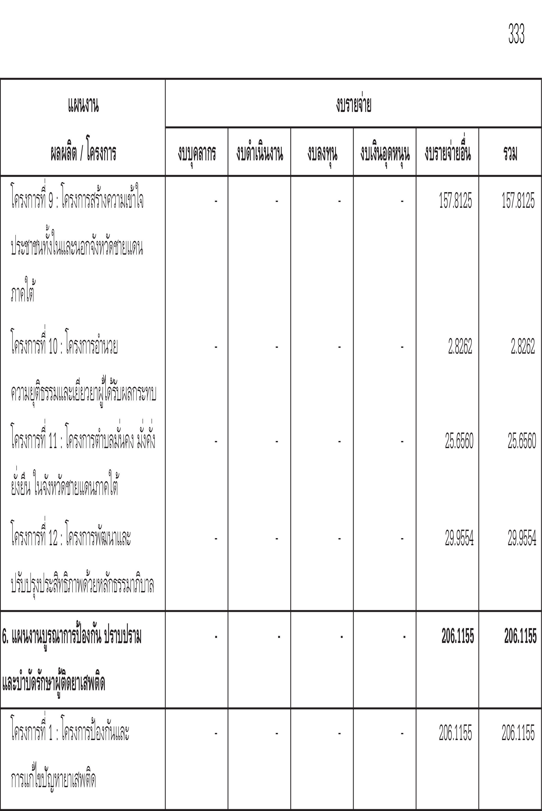 3. งบประมาณรายจ่ายบูรณาการ มี 2 แผน คือ 1.แผนงานบูรณาการขับเคลื่อนการแก้ไขปัญหาจังหวัดชายแดนภาคใต้ และ 2.แผนงานบูรณาการป้องกัน ปราบปราม และบำบัดรักษาผู้ติดยาเสพติด รวมวงเงิน 2,416,107,500 บาท