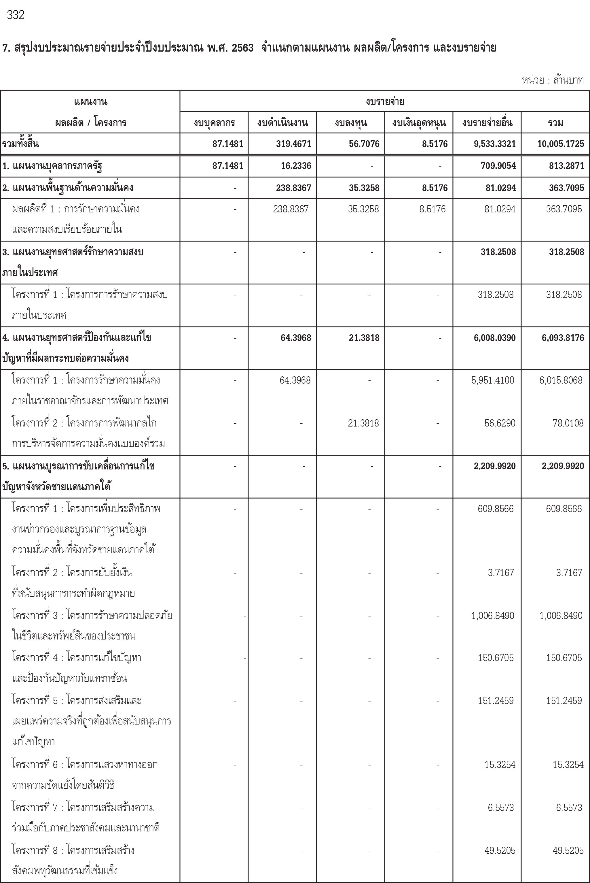 -โครงการเพิ่มประสิทธิภาพงานข่าวกรองและบูรณาการฐานข้อมูลความมั่นคงพื้นที่จังหวัดชายแดนภาคใต้ ตั้งงบประมาณไว้ที่ 609.8 ล้านบาท บรรจุอยู่ในแผนงานบูรณาการขับเคลื่อนการแก้ไขปัญหาจังหวัดชายแดนภาคใต้
