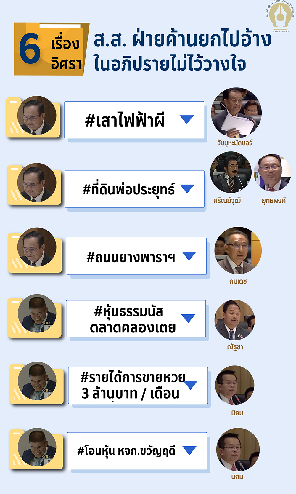 INFO: 6 เรื่อง 'อิศรา' ฝ่ายค้านยกไปอ้างในอภิปรายไม่ไว้วางใจ