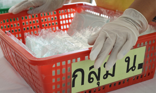 ยกเว้น ผู้ที่รับการเเจกจาก อย. จะไม่มีการทำสัญลักษณ์ ทั้งนี้ จากการสอบถามเจ้าหน้าที่ รับทราบเหตุผลว่า เชื่อมั่นในความซื่อสัตย์ของประชาชน เเละการประทับรอยหมึกหรือขีดปากกาเป็นสัญลักษณ์บนหลังมือ จะทำให้เกิดเชื้อโรคได้