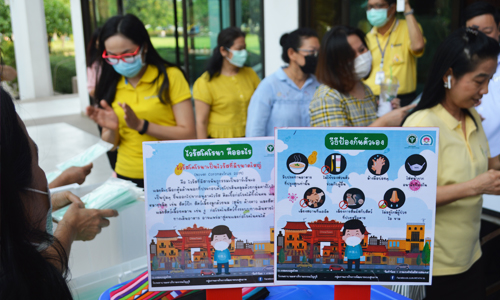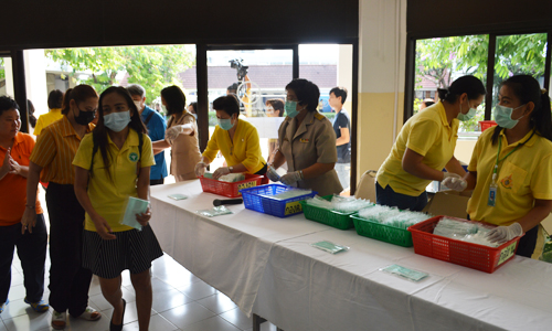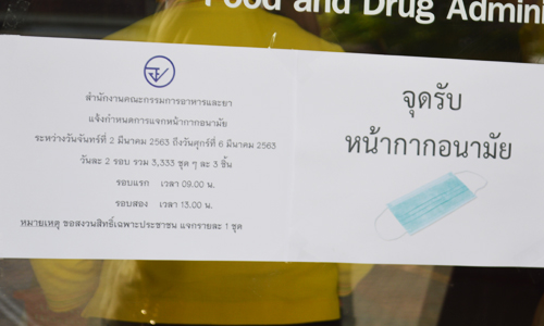ขณะที่ผู้สื่อข่าวรายงานบรรยากาศการเเจกหน้ากากอนามัยให้ประชาชนวันเเรก ตั้งเเต่เวลา 09.00 น. เเต่ละคนสามารถรับได้ 1 ชุด ชุดละ 3 ชิ้น โดยกระทรวงสาธารณสุข จัดให้บริการทั้งหมด 9 จุด ในกรมต่าง ๆ จุดละ 10,000 ชิ้น ได้เเก่ สำนักปลัดกระทรวงสาธารณสุข รับที่ลานโถง อาคาร 3, สำนักงานคณะกรรมการอาหารเเละยา (อย.) รับที่อาคาร 1, กรมการเเพทย์ รับที่อาคาร 1, กรมอนามัย รับที่อาคาร 1, กรมควบคุมโรค รับที่อาคาร 1, กรมวิทยาศาสตร์การเเพทย์ รับที่ศูนย์บริการวัน สต็อป เซอร์วิส, กรมสุขภาพจิต รับที่อาคาร 1, กรมสนับสนุนบริการสุขภาพ รับที่ชั้น 1 เเละกรมการเเพทย์เเผนไทยเเละการเเพทย์ทางเลือก รับที่อาคาร 1
