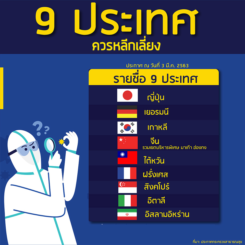 สธ.ประกาศ 9 ประเทศ เป็นเขตติดโรคติดต่ออันตราย COVID-19