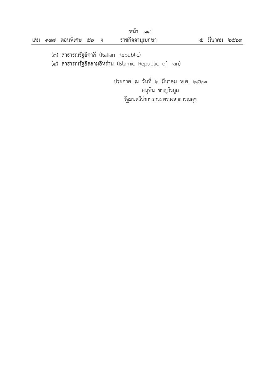INFO: ราชกิจจาฯ แพร่ประกาศกระทรวงสาธารณสุข ให้ 4 ปท. เป็นเขตโรคติดต่ออันตราย 'โควิด-19' มี เกาหลี- อิตาลี -อิหร่าน -จีน นับรวมมาเก๊าฮ่องกง