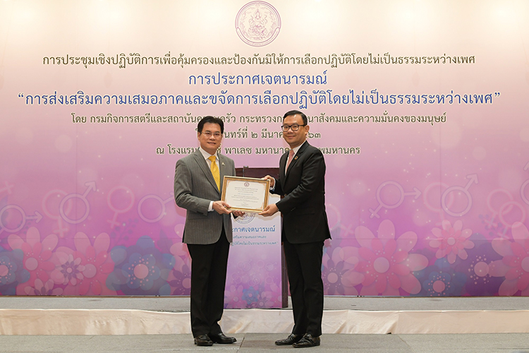 เครือซีพี ร่วมกับ พม. ภาครัฐ ภาคเอกชนและสถาบันการศึกษา รวม 24 องค์กร ประกาศเจตนารมณ์ "มุ่งมั่นในการสร้างสังคมเสมอภาค ปราศจากการเลือกปฏิบัติโดยไม่เป็นธรรมระหว่างเพศ”